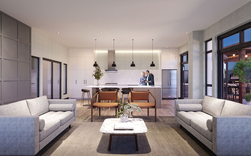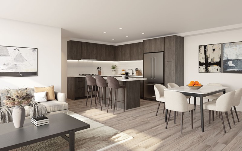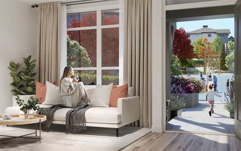 Terrayne is located within walking distance of Burke Mountain Village's vibrant central hub, new schools, the future Northeast Community Centre, and the amphitheatre-style Princeton Plaza public gathering space. Water features, trails and paths, public art and cafes with sunny patios will animate this pedestrian-oriented mountainside community, creating a one-of-a-kind gathering space perfectly set within a spectacular natural playground.