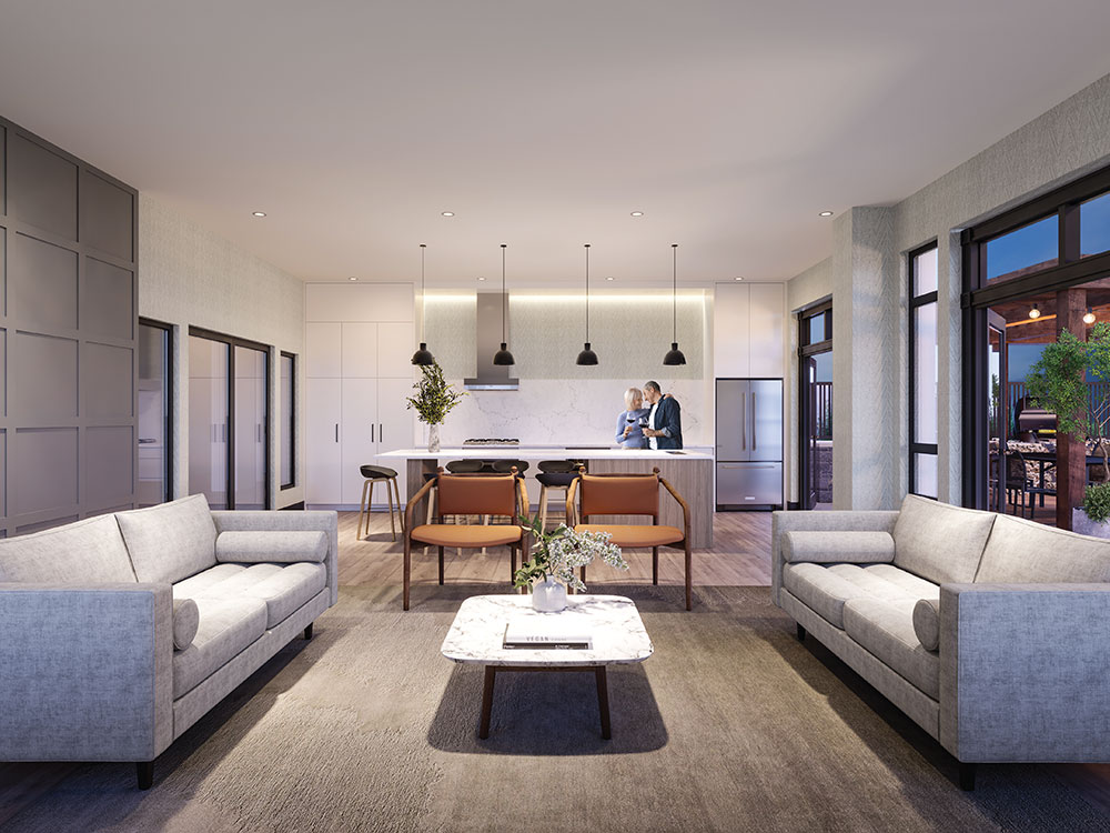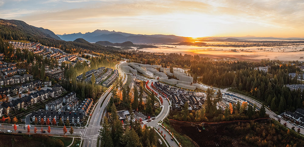 Terrayne is located within walking distance of Burke Mountain Village's vibrant central hub, new schools, the future Northeast Community Centre, and the amphitheatre-style Princeton Plaza public gathering space. Water features, trails and paths, public art and cafes with sunny patios will animate this pedestrian-oriented mountainside community, creating a one-of-a-kind gathering space perfectly set within a spectacular natural playground.